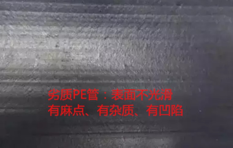 劣質(zhì)產(chǎn)品:管材內(nèi)外壁表面不光滑、不光亮、有麻點(diǎn)、有較多顆粒狀雜質(zhì),內(nèi)外表面明顯凹陷。