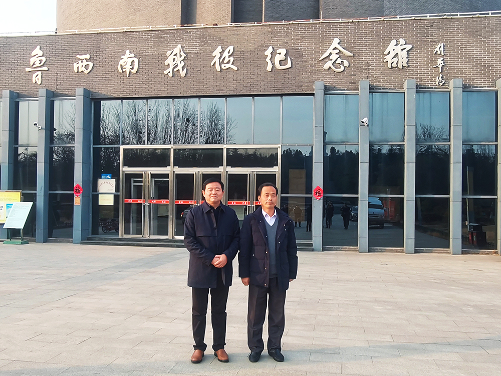 侯總與彭局長(zhǎng)在魯西南戰(zhàn)役紀(jì)念館前合影留念