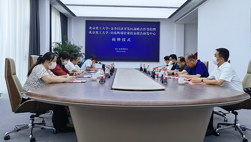 2022年7月25日上午,山東輝瑞管業(yè)聯(lián)合金鄉(xiāng)縣經(jīng)濟(jì)開發(fā)區(qū)成功舉辦《北京化工大學(xué)-金鄉(xiāng)經(jīng)濟(jì)開發(fā)區(qū)戰(zhàn)略合作簽約》暨《北京化工大學(xué)-山東輝瑞管業(yè)校企聯(lián)合研發(fā)中心》揭牌儀式。