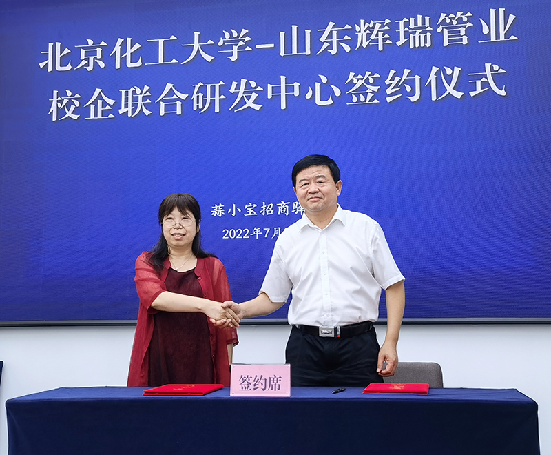 簽訂成立“北京化工大學(xué)-山東輝瑞管業(yè)校企聯(lián)合研發(fā)中心”協(xié)議,簽約人:馬秀清、侯成安