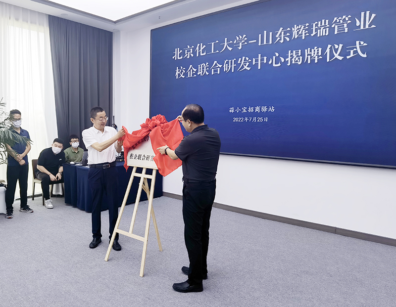 為北京化工大學(xué)-山東輝瑞管業(yè)校企聯(lián)合研發(fā)中心揭牌揭牌人:何雨駿、李兆勝